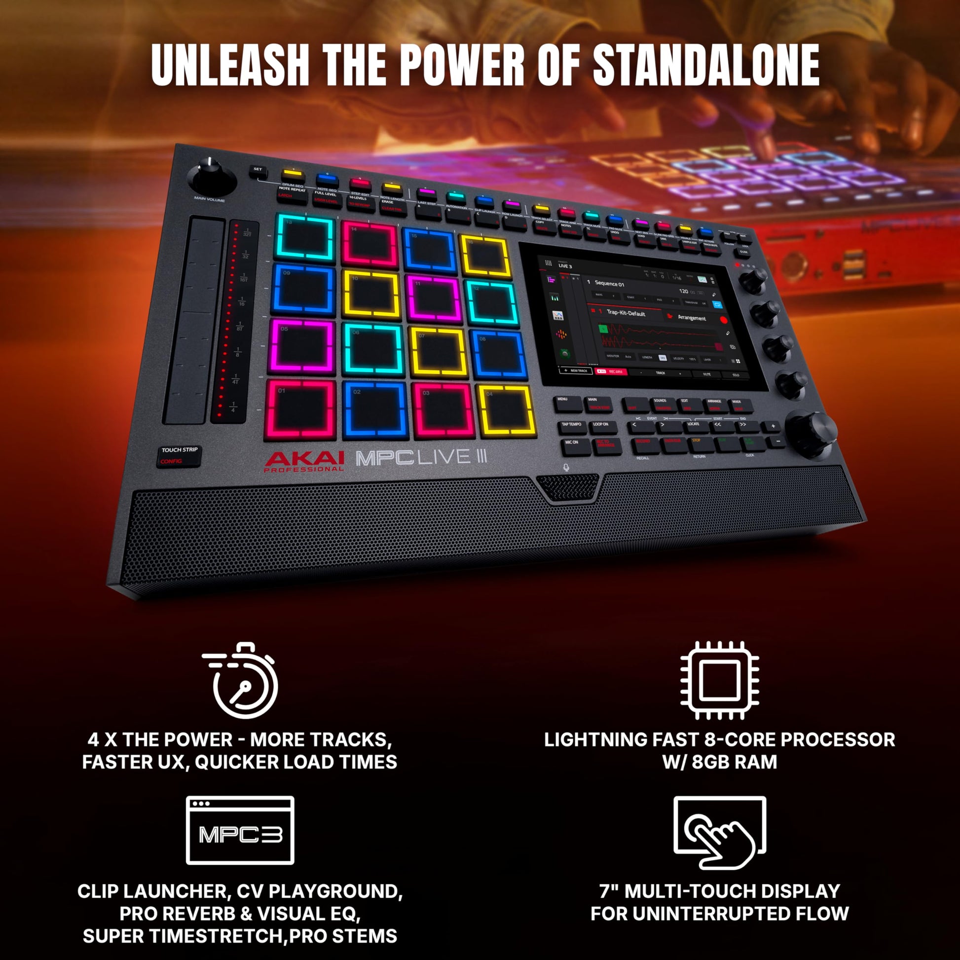 - The Most Powerful MPC to Date - Produce, record, mix & perform with no computer required; fully standalone, MPC Live III features an 8-core processor, expanded 8GB RAM, and MPC3 OS for ultra-fast workflow and pro-grade sound design