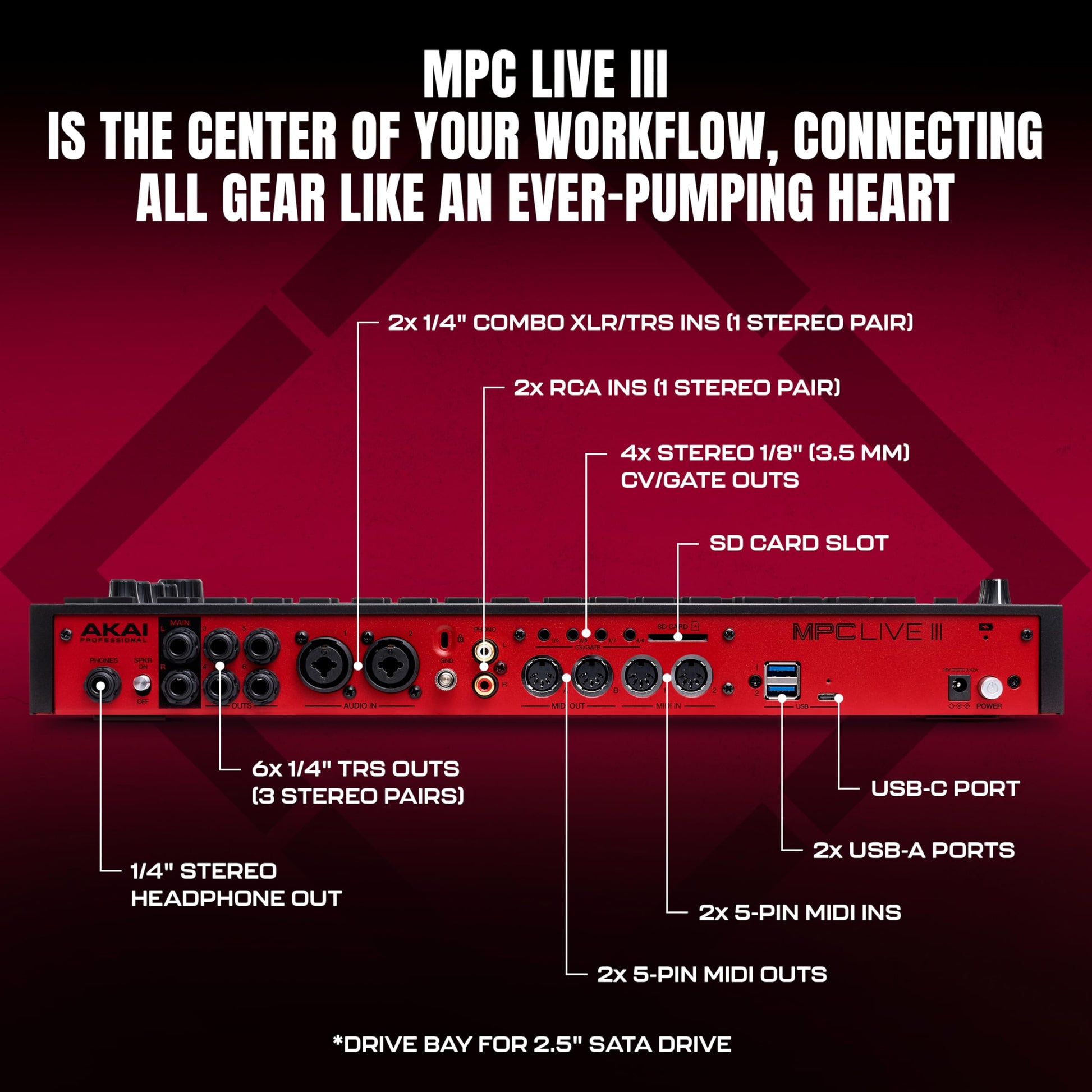 - Designed to Adapt - Whether you’re programming beats, sampling grooves, layering stems, triggering clips, or sequencing a whole track from scratch, MPC Live III’s got the range to keep up